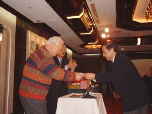 三年来の大雪の中、ゲスト、メンバーが集まり、2001年の新年会が昨年同様、帝国ホテル「福の間」で開催されました。