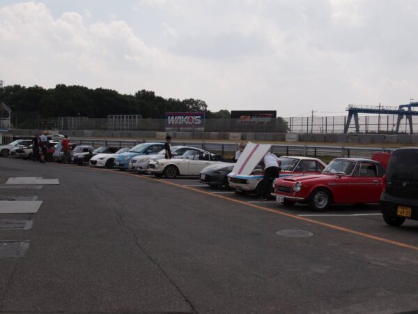 今年の異常な暑さの中ではありますが会員20台、ビジター42台の合計62台の参加を得て、3グループに分けて20分走行を2回ずつ、午後2時半から2時間の走行となりました。