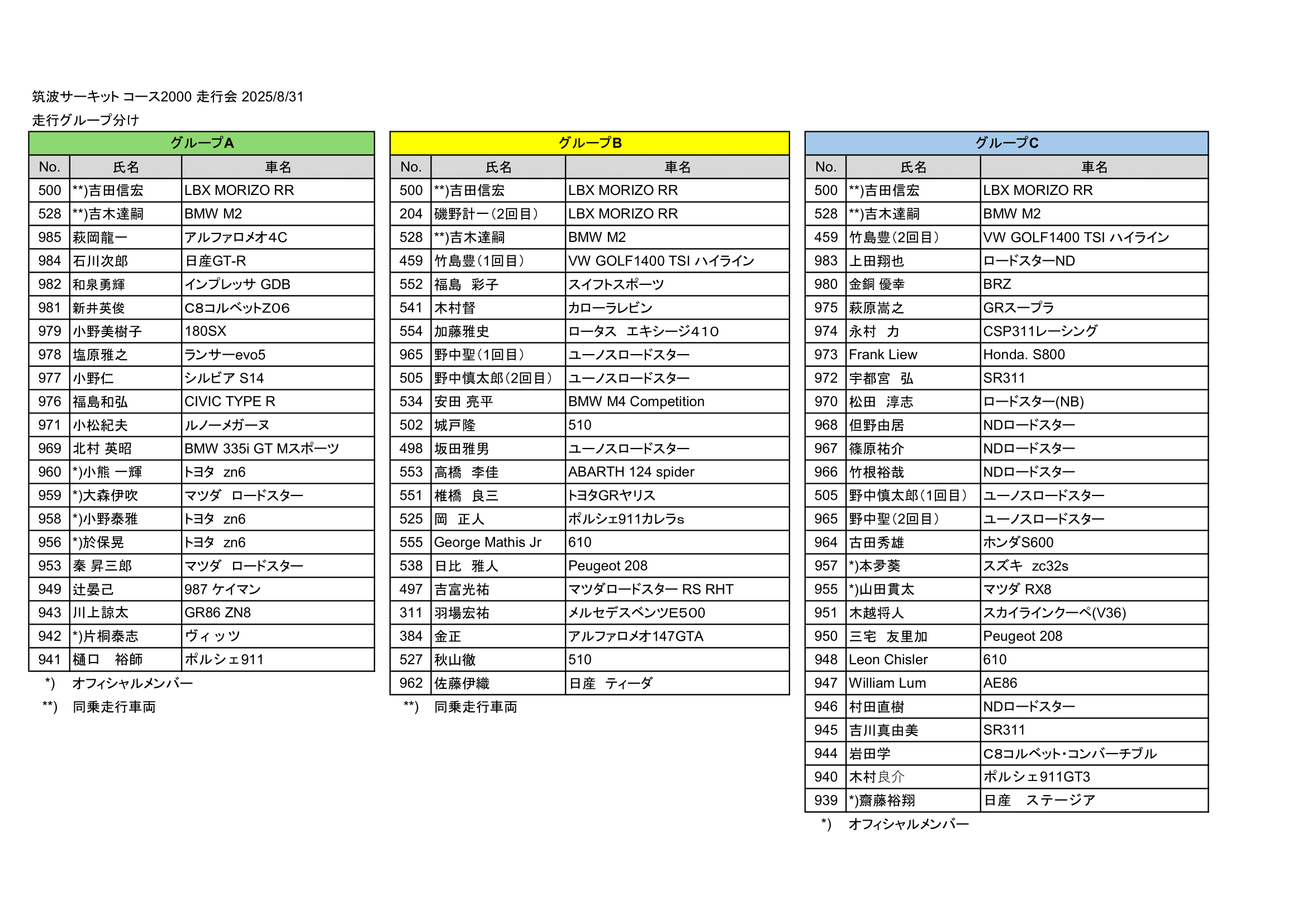 SCCJ恒例の筑波2000走行会は元々2月に予定していましたが降雪予報により延期となりこの度8月31日に開催されました。