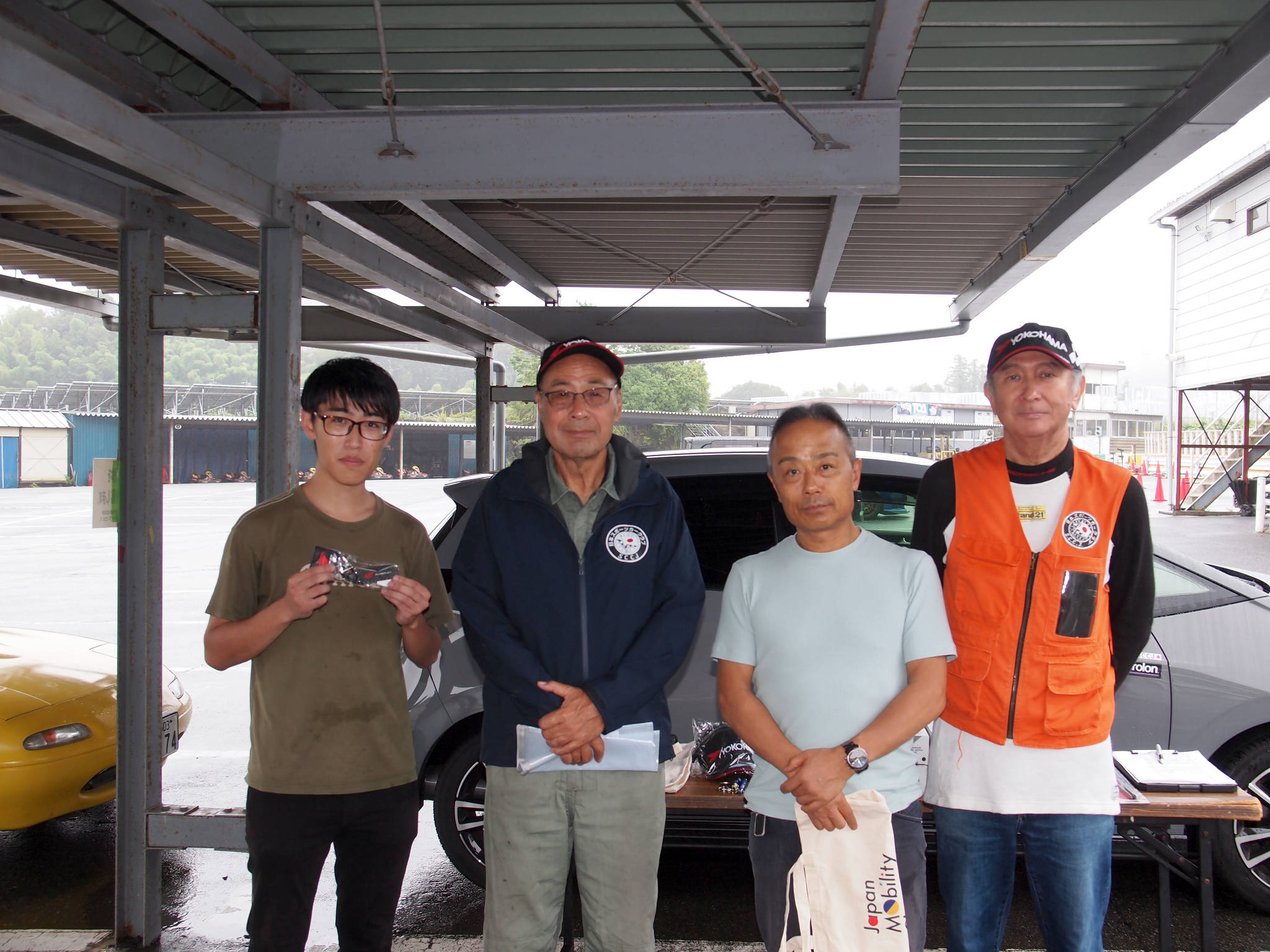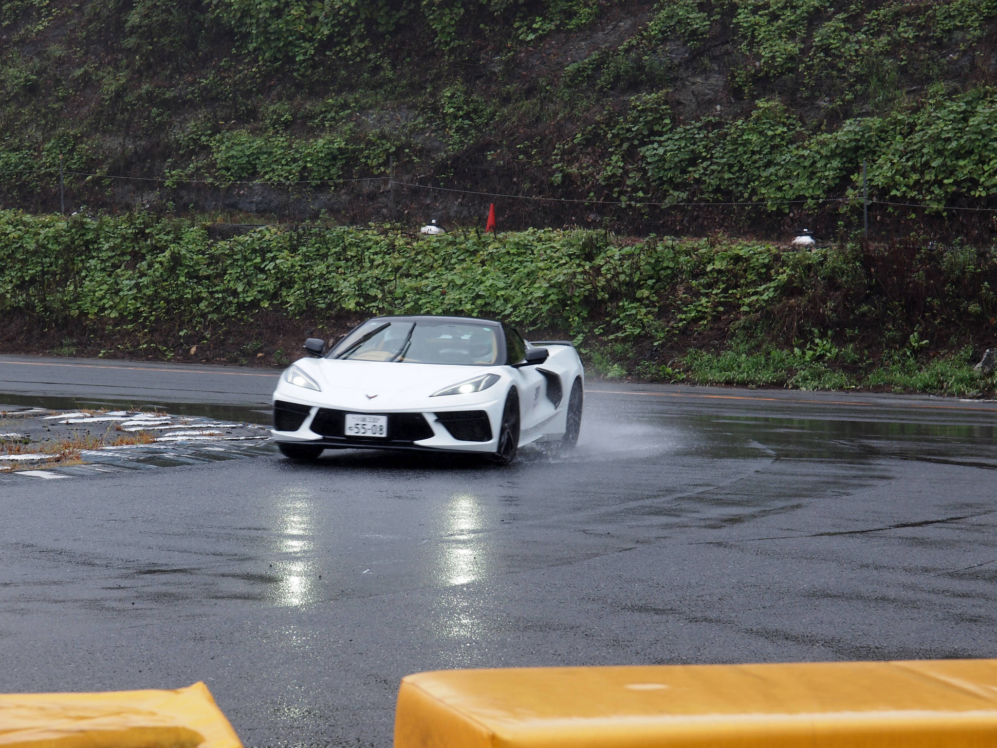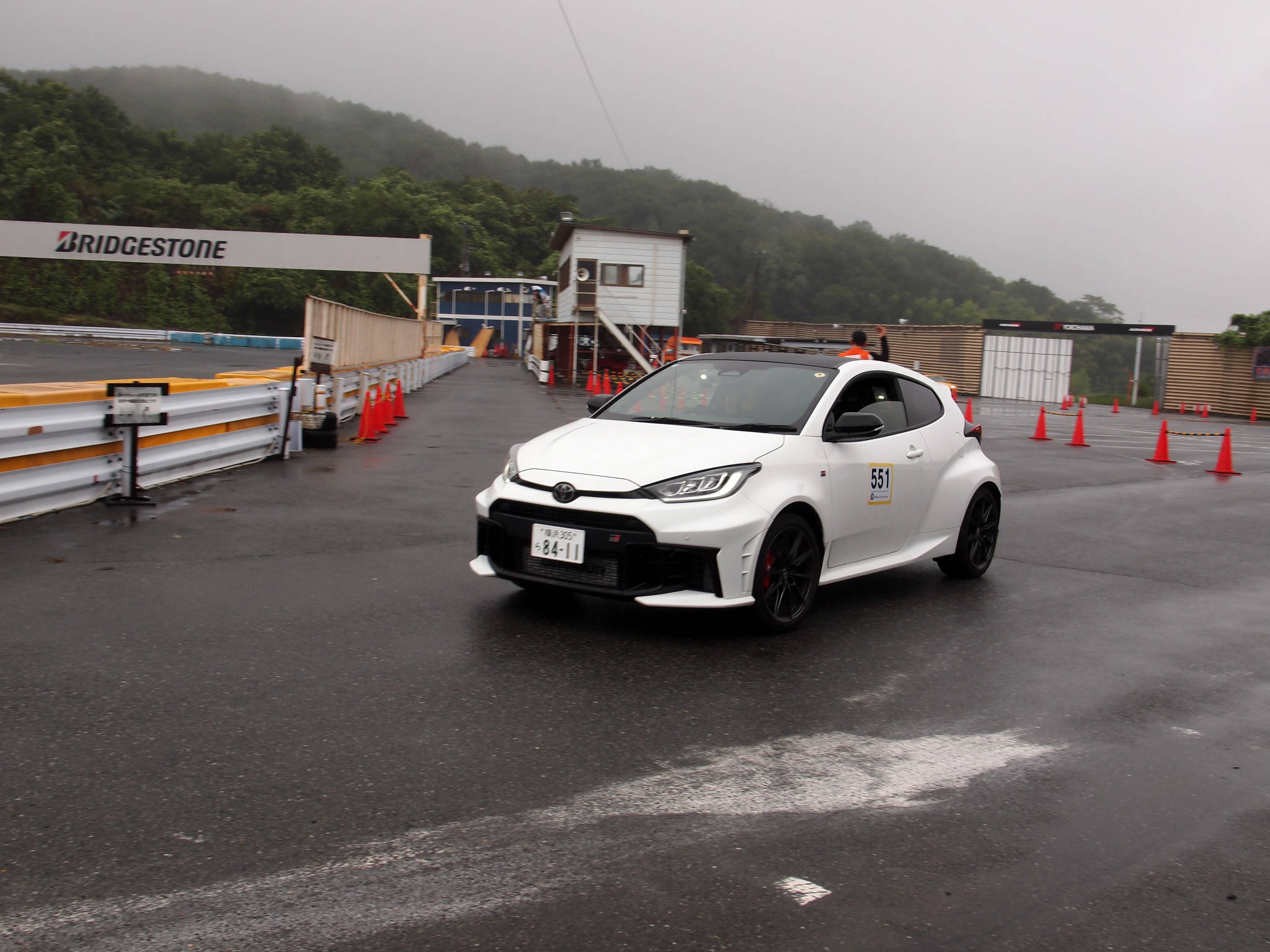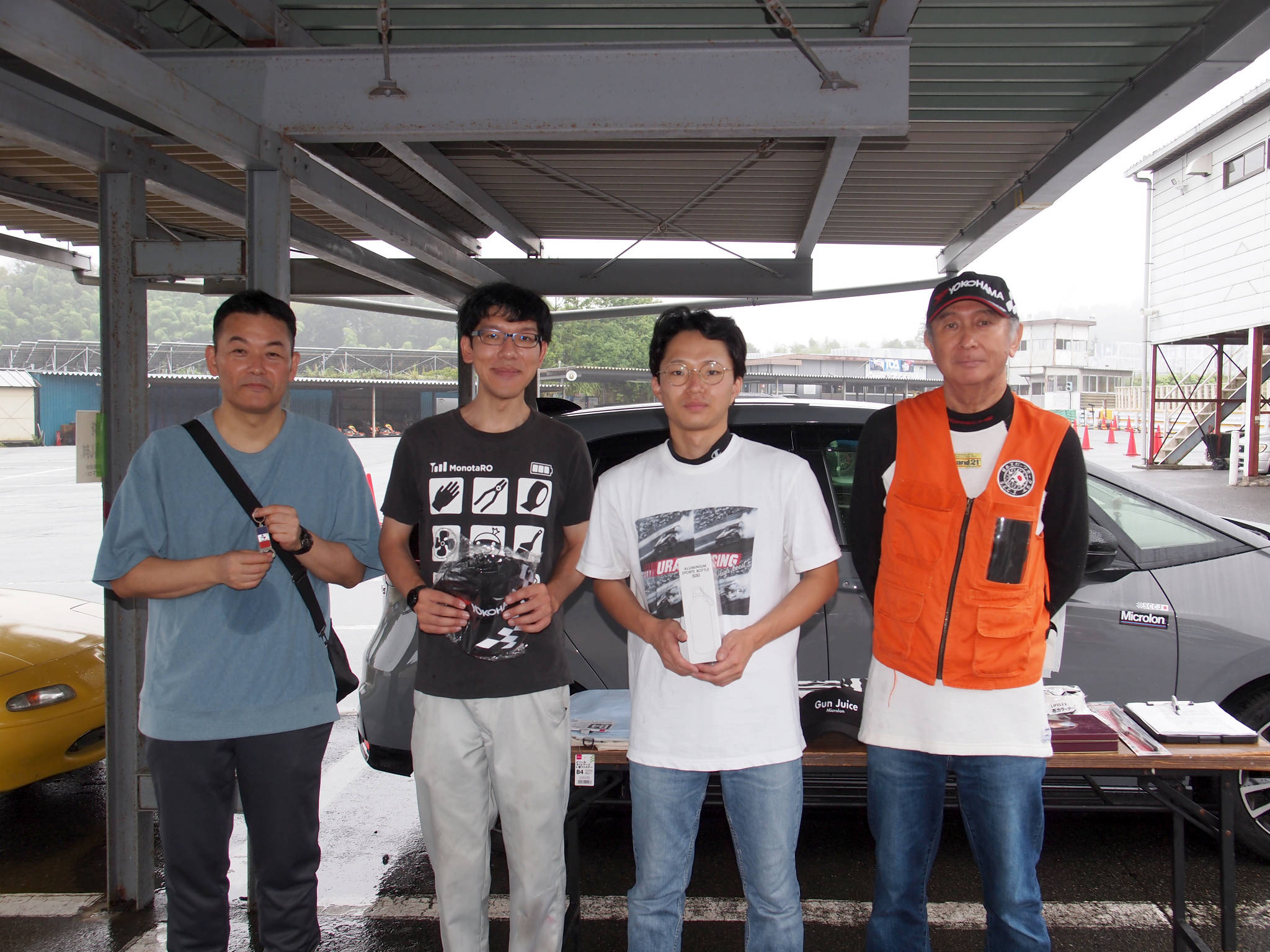 あいにくの小雨が降り続く中ではありますが、 ウェット状態のコースで前後タイヤのグリップを細心の操作でバラ ンスさせ車両姿勢をコントロールするという絶好の練習機会となり 、 参加者の皆さんはそれぞれラップタイムを徐々に向上させ自信につ なげていただけたようです。