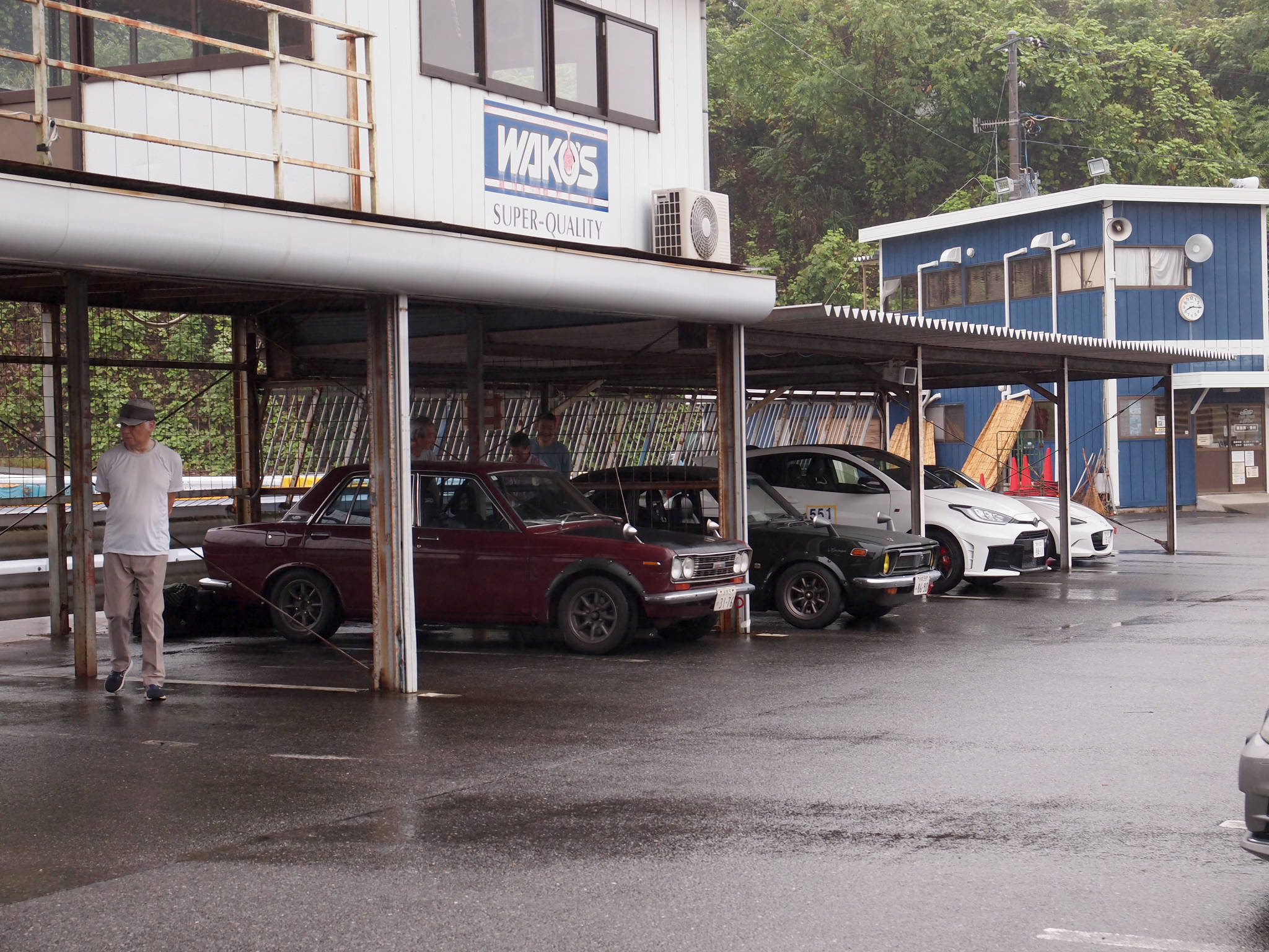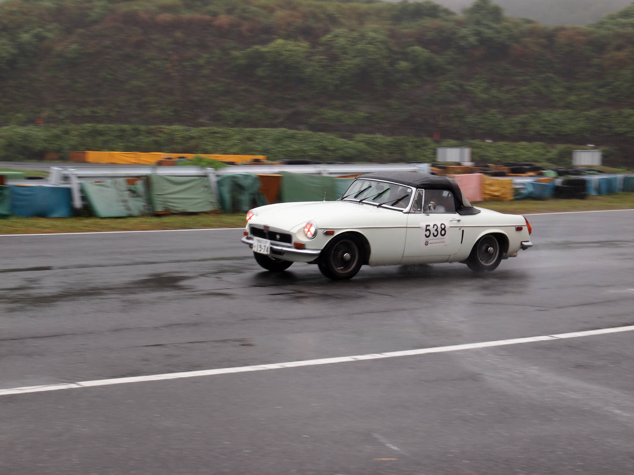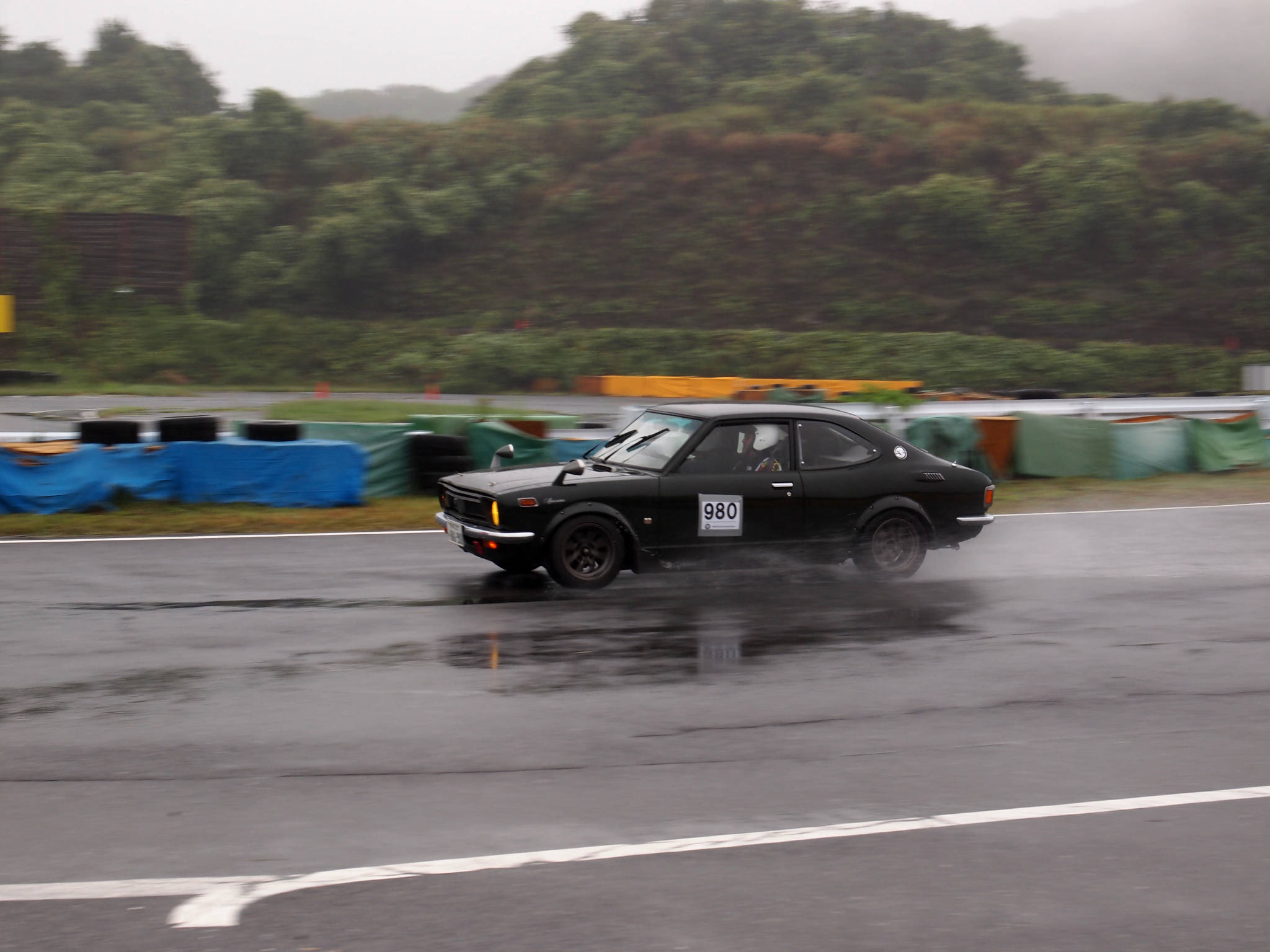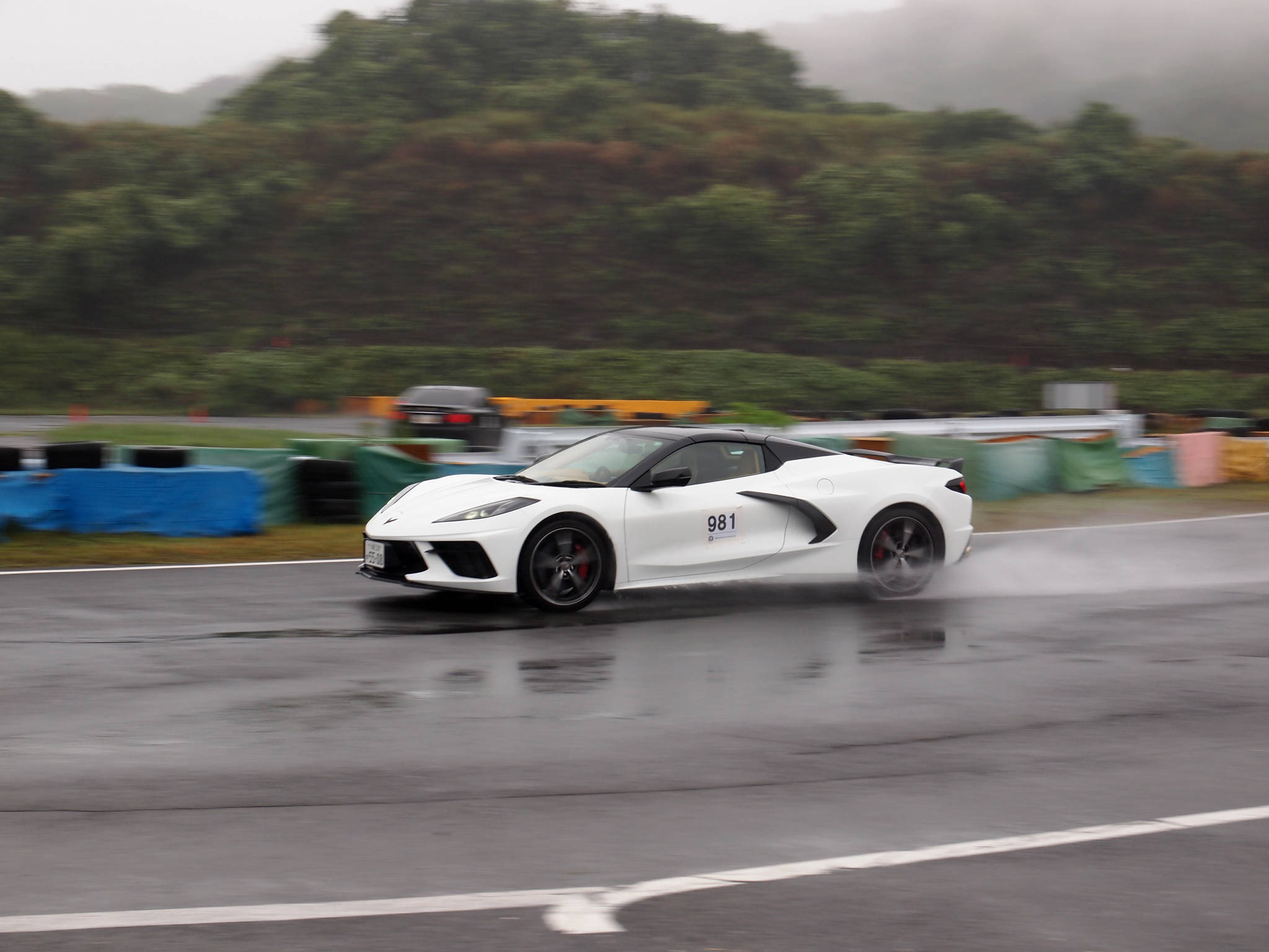 あいにくの小雨が降り続く中ではありますが、 ウェット状態のコースで前後タイヤのグリップを細心の操作でバラ ンスさせ車両姿勢をコントロールするという絶好の練習機会となり 、 参加者の皆さんはそれぞれラップタイムを徐々に向上させ自信につ なげていただけたようです。