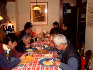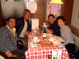 同じくCP1の羽場会員のファミリー ゴールの「伊太利亜台所」で昼食をとる羽根会員、惣道会員、鈴木会員他の参加者
