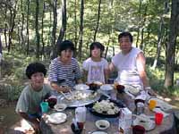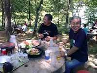 当日は快晴の暑い日でしたが、バーベキューサイトは林の中の木陰にあり、時折心地よい風が吹き抜け、