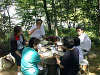 やがてバーベキューの仕度が整い、牛肉、野菜などを焼き始めました。